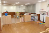 | もも組0歳児さん・ばら組1歳児さんの保育室 (手洗い場 ・ 水飲み場 ・ 冷暖房設備 ・ イオンクラスター) (お部屋の中に給湯室 ・ 手洗い場 ・ 調乳室 ・ トイレ・シャワーパン ・ おむつ替え台もあります) |